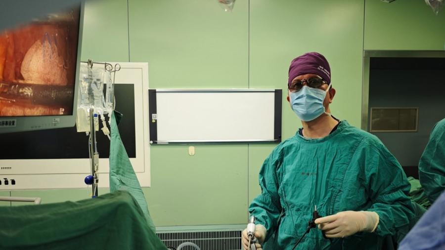 “这台微创手术留给患者腹壁仅有一个5厘米的辅助小切口取出标本,其余操作均通过小孔完成,远小于传统开腹手术的20厘米以上切口。”黄华教授说。